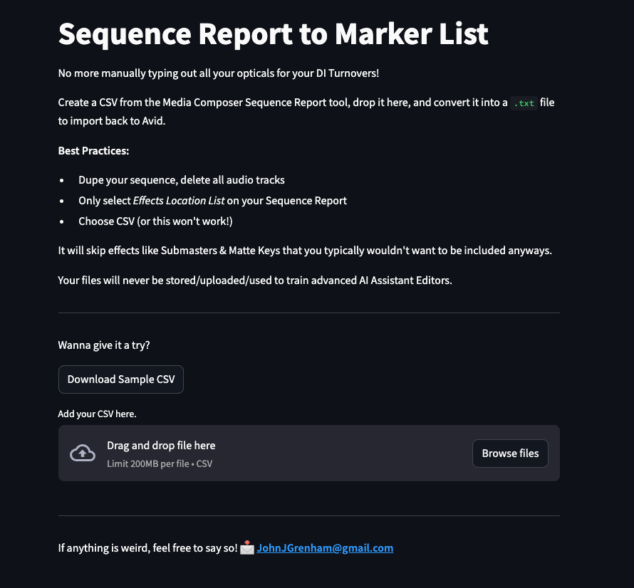 This takes a Media Composer sequence report & generates a marker list of all your optical effects. No need to type out 100s of 3D warps ever again!